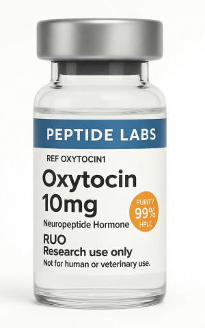 Peptides are supplied as lyophilized (freeze-dried) material in sealed, labeled vials. Each vial includes identifying information to ensure accuracy, traceability, and proper handling during research.