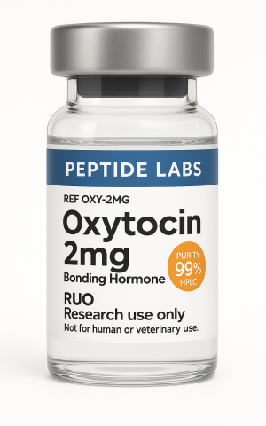 Peptides are supplied as lyophilized (freeze-dried) material in sealed, labeled vials. Each vial includes identifying information to ensure accuracy, traceability, and proper handling during research.